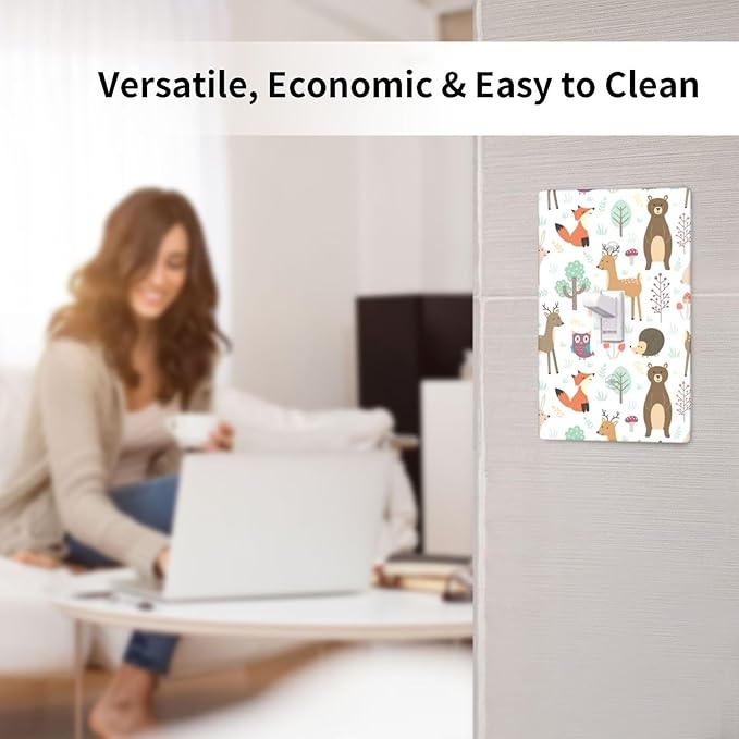 Cartoon Animal Deer Bear Fox Light Switch Cover Decorative Single Toggle Plastic Wall Plate Outlet Cover for Women Girls Bedroom Kitchen Living Room Decor 4.5 * 2.76