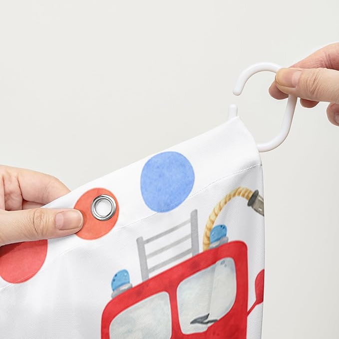 AILONEN Fire Truck Shower Curtain for Boys Bathroom Decor,Firemen Truck Bath Curtain,Construction Truck Printed Kids Curtain,Waterproof with 12 Plastic Hooks, 48" W x 72" H