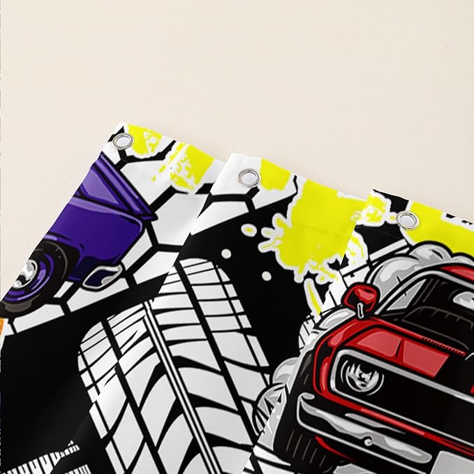 AILONEN Racing Car Shower Curtain for Bathroom Decor,Cool Racer Bath Curtain for Kids Boys Teens,Graffiti Printed Curtain Waterproof with 12 Plastic Hooks, 48" W x 72" H