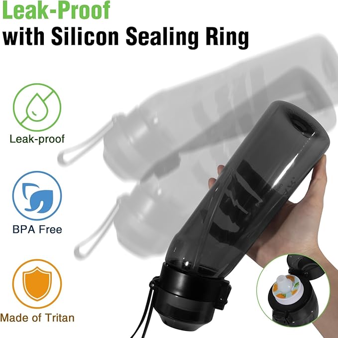 • 【Buckle Design】This water bottle boasts a locking buckle. Opening the lock has a silicone nozzle with a straw inside to prevent turbulent water flow. Wide-mouth opening makes it easy to fill with ice cubes and fruits, also for efficient cleaning.