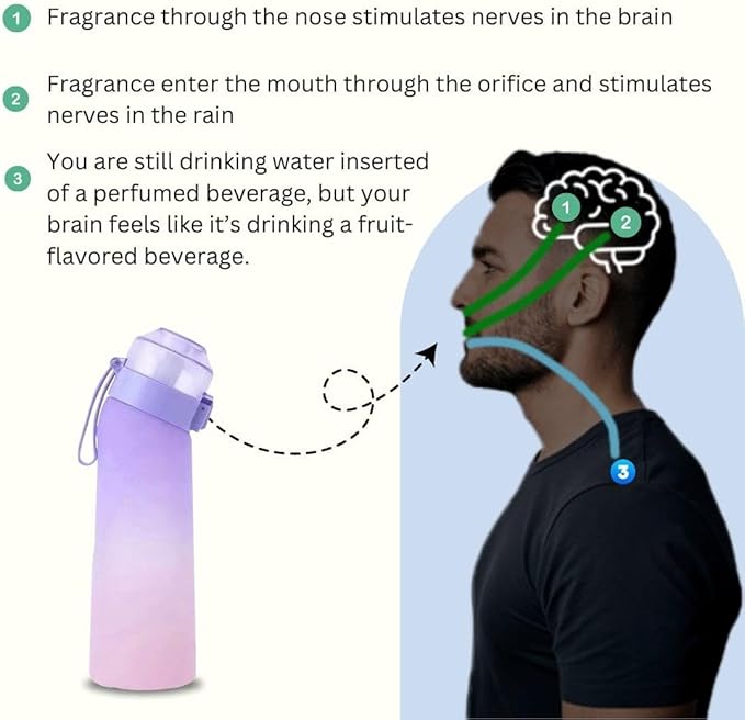 • Sensory Stimulation: Immerse yourself in a world of flavors with our innovative aroma ring. The air water bottled flavour pod scented stimulates your sense of smell, creating the illusion of taste, making hydration a delightful experience. Choose from 4 exciting flavor pods to suit your mood.