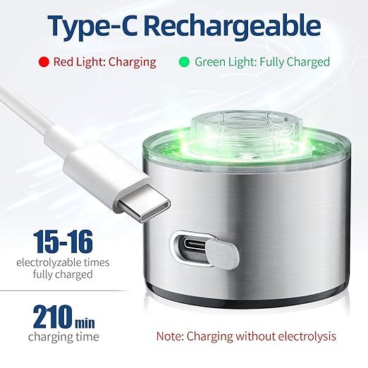 • 【USB Recharge & Large Capacity】Our hydrogen water bottle was designed with style and functionality in mind to enhance stability and slip resistance. It has a 1500mAh battery, which can be used about 15-20 times on a single charge. The USB-C Rechargeable convenient for you to refill hydrogen-rich water anytime when you are traveling, gym, working, or leisurely walks. With a capacity of 420-450 milliliters (size: 7.5 inches * 2.5 inches * 2.5 inches).