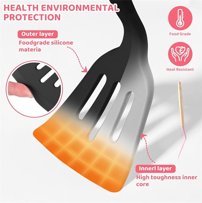 • 【HIGH-QUALITY COOKING UTENSIL SET】These ergonomic utensils are made of premium food-grade silicone and durable heat-resistant acacia wood. With a heat resistance of up to 464°F, these utensils offer both flexibility and sturdiness for all your cooking needs. Enjoy reliable quality and great value with this essential kitchen utensil set.