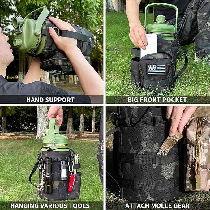 • 【Suitable For Traveling & Sport】: Wherever you go, you can bring a water jug with you. If you or your loved one is an outdoor worker, such as movers, truck drivers or couriers, this bottle is a lifesaver in the summer heat. It's also great for workout, hiking, camping, student football training, baseball training or backpacking. Our water bottle with tactical carring bag is a great gift idea!