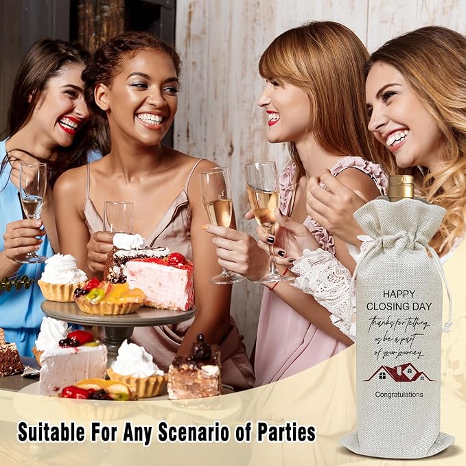 Wine Canvas Bag, Housewarming Gifts Wine Gift Bag, House Warming Gifts New Home Gifts for Friends New Homeowners Gifts Wine Bags for Wine Bottles, Wine Gifts With Drawstring Party Decoration -WB32