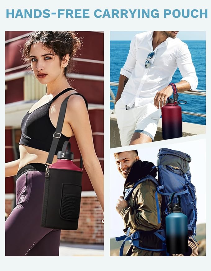 • STAY OUTDOOR LONGER: With a large 128 oz capacity, the large water bottle allows you to enjoy your trip more with fewer refills, perfect for hiking, camping and sporting events. It's easy to stay hydrated and refreshed on exciting adventures with such a versatile bottle.