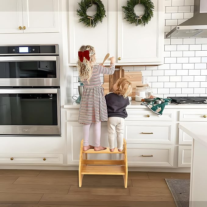 • Compact and Portable, Durable and Stylish: The wooden step stool measures 14.7" x 13.4" x 12.6". This practical and durable wood stool has a simple design, natural and clean colors without any logos, making it perfect for both k!ds and adults. It is convenient for you and your family to use in the kitchen, bathroom, bedroom, or any other area where you need extra support to reach higher places