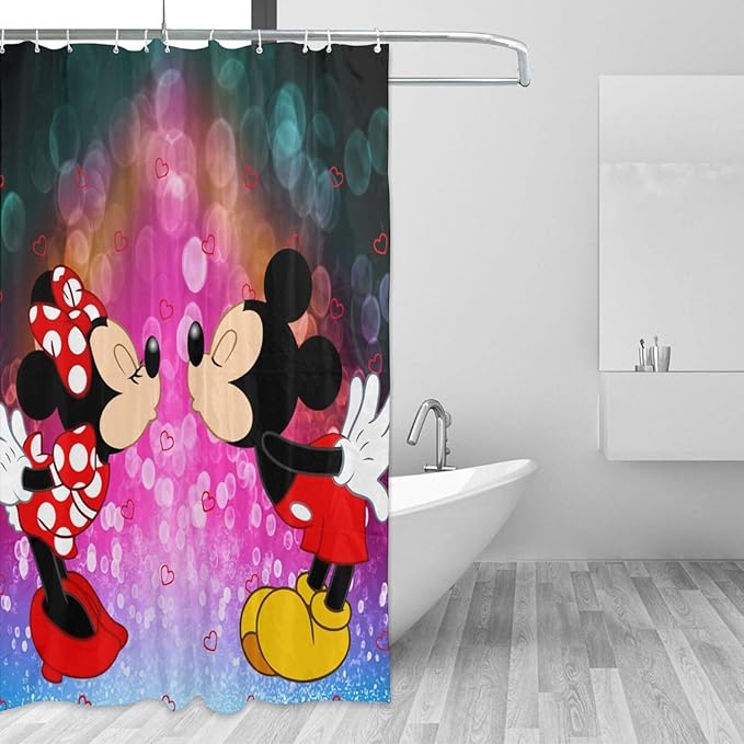 Cute Cartoon Mouse Shower Curtain Bath Curtain Sets Anime Home Decor Gift 72x72 Inch Accessories Great for Showers Bathtubs