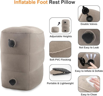 • 【Multi-functional Foot Rest Pillow 】This multi-functional travel inflatable foot rest pillow features an adjustable design, it supports legs and feet, reducing strain. Elevating your legs with a travel footrest helps blood circulation, reduces swelling caused by prolonged sitting and lowers the risk of deep vein thrombosis.