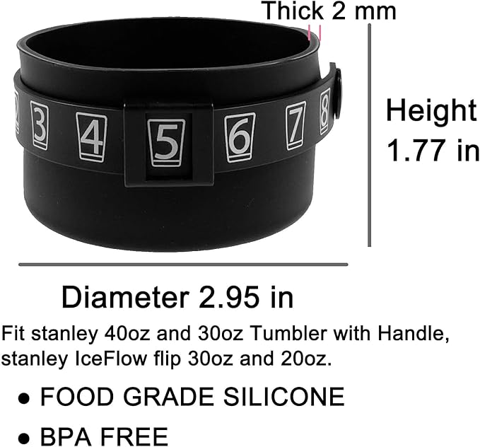 • Silicone boot size: Diameter: 2.95 in. Height 1.77 in. It fits Stanley, Hydroflask, Yeti, Owala, Simple Modern and so many other bottles that are 20-40oz.