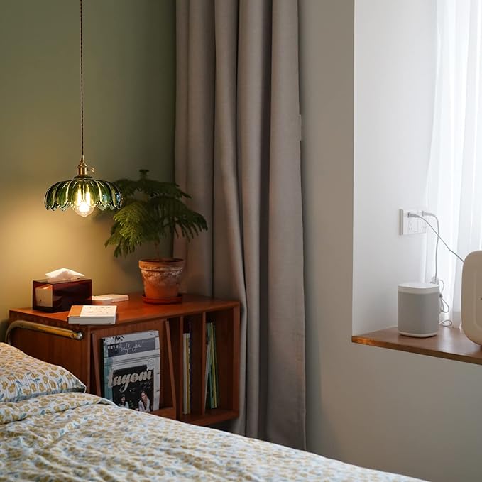 Plug in Hanging Light Fixture, Kitchen Pendant Lighting Glass Pendant Light, Green Pendant Lights for Kitchen Island, Bedroom, Dining Room, Living Room, E26 No Bulb