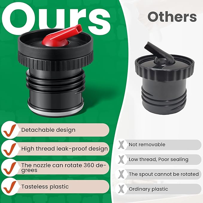 • 2 IN 1 NOZZLE DESIGN: This water bottle replacement lid features a 2 in 1 design with two different pouring methods; You can remove the nozzle section to pour liquid faster, or use the spout for precise pouring; The nozzle can rotate 360 degrees, allowing you to pour beverages without completely removing the cap