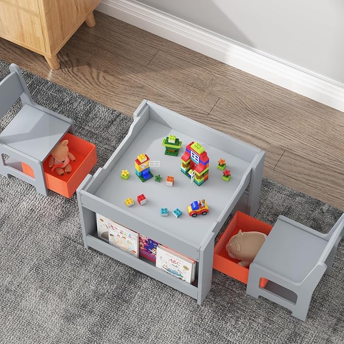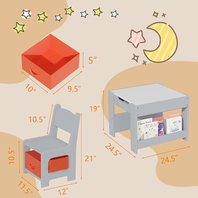 • 【Practical Toy Storage】The bottom of the chairs have removable collapsible fabric drawer that encourage good organizing habits.The under-seat compartment maximizes space utilization and provides ample storage for toys, snacks, books, and more, fostering a tidy play area.