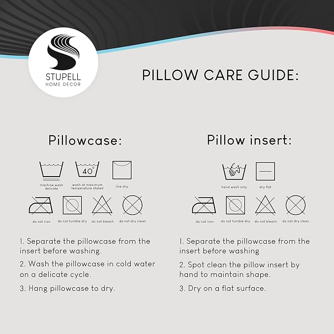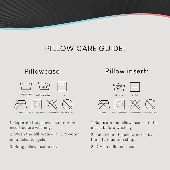 • To wash remove filling insert from casing using invisible zipper. Clean pillow case separately, machine wash on delicate with cold water and mild detergent. For best quality hang dry. Pillow insert is spot clean only.