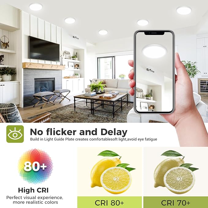 • 【Brightness Dimmable and 3 Color Modes】-Hepside led ceiling light flush mount has 3 kinds of color temperature (Warm white 3000K, Natural white 4000K, Daylight white 6500K), the brightness range can also be adjusted between 10%-100%.Also available as a night light, this ceiling light fixture has a minimum dimming brightness of 10% at 3000K warm white. Children or the elderly will feel safer at night due to the quiet and comfortable light source.