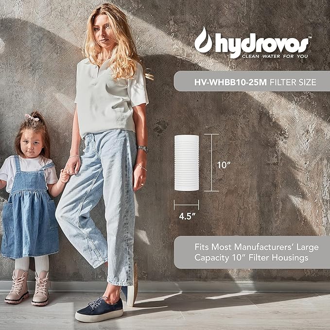 4.5 x 10 Inch Large Capacity Whole House Water Filter, NSF 42 Certified 25 Micron Sediment Filtration, Pack of 4