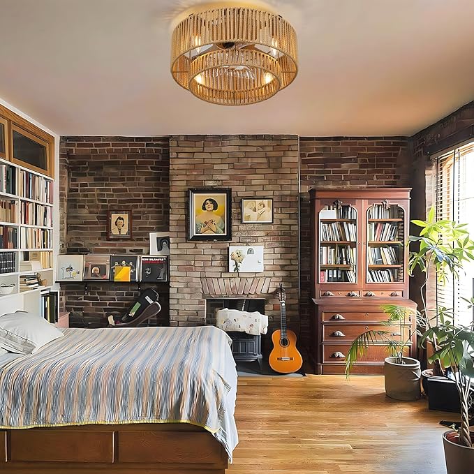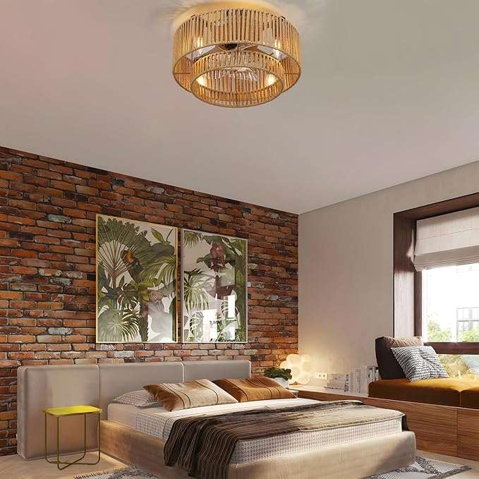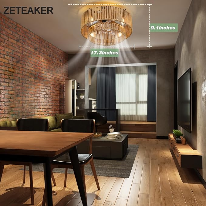 • UNIQUE DESIGN: Handcrafted with care, ZETEAKER boho ceiling Fan with lights features a unique rattan woven design that adds a touch of Bohemian charm to your space. Measuring 17.3 inches in length and 9.05 inches in height, flush mount design. Embrace the retro vibes and elevate your style, whether it's a trendy urban loft or a cozy modern farmhouse.