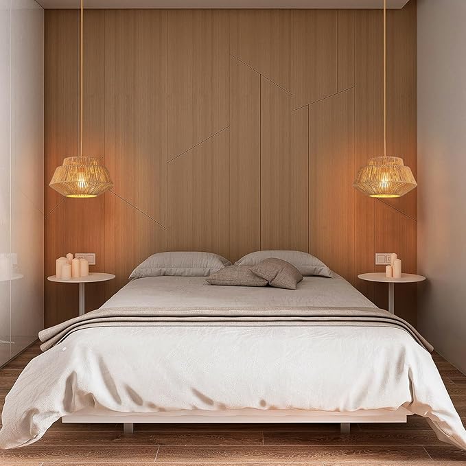 • Wide Application: Elegant Boho pendant light fixtures combined with hand-woven paper rattan cages to match the perfect vintage appearance. Rich Bohemian style and modern styles are gathered on chandeliers for dining room, this kitchen light fixtures can be matched with various Bohemian styles, Perfect rattan light fixtures are suitable for bedrooms, kitchens, living rooms, rooms, kitchen islands, and foyers. The light fixture is perfect for enhancing any space with warmth and charm
