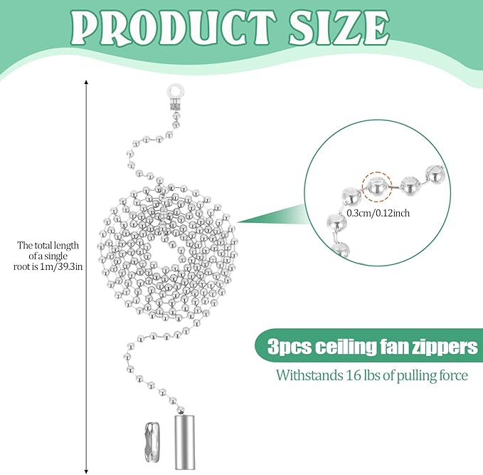 • 【You Will Get】Teh set contains 3 pcs ceiling fan pull chain extension, each 39 inches/1 meter long, which can meet you're various use or replacement needs.
