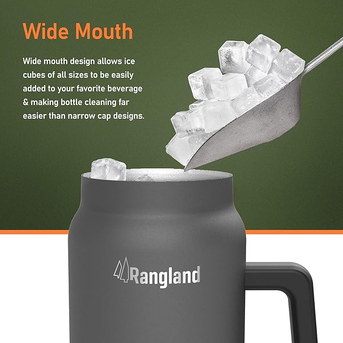 • 64oz Stainless steel insulated tumbler with handle, the perfect large-capacity water bottle for keeping your drinks hot or cold all day long.